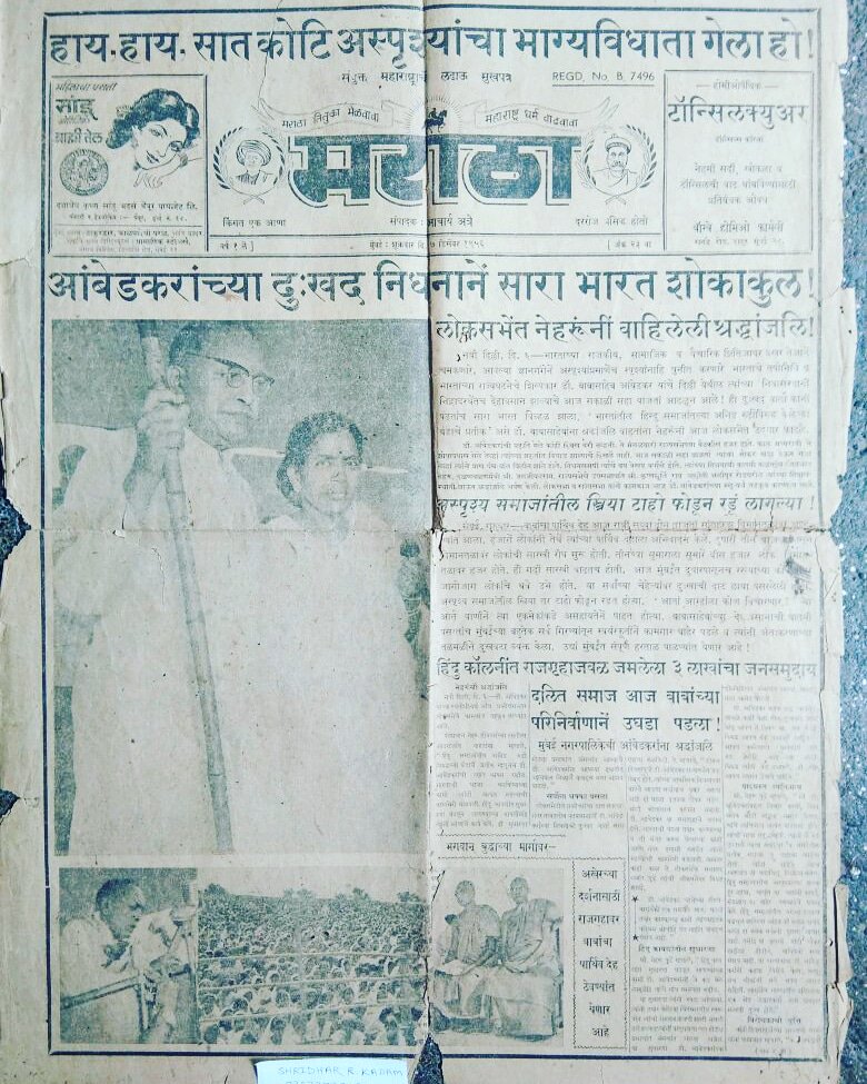 १ मे १९६० ला महाराष्ट्र राज्याची निर्मिती झाली. त्या दिवशीच्या दैनिक मराठामध्ये “हुतात्म्याच्या अश्रृंनी महाराष्ट्रावर अभिषेक” असे मुख्य शीर्षक होते.